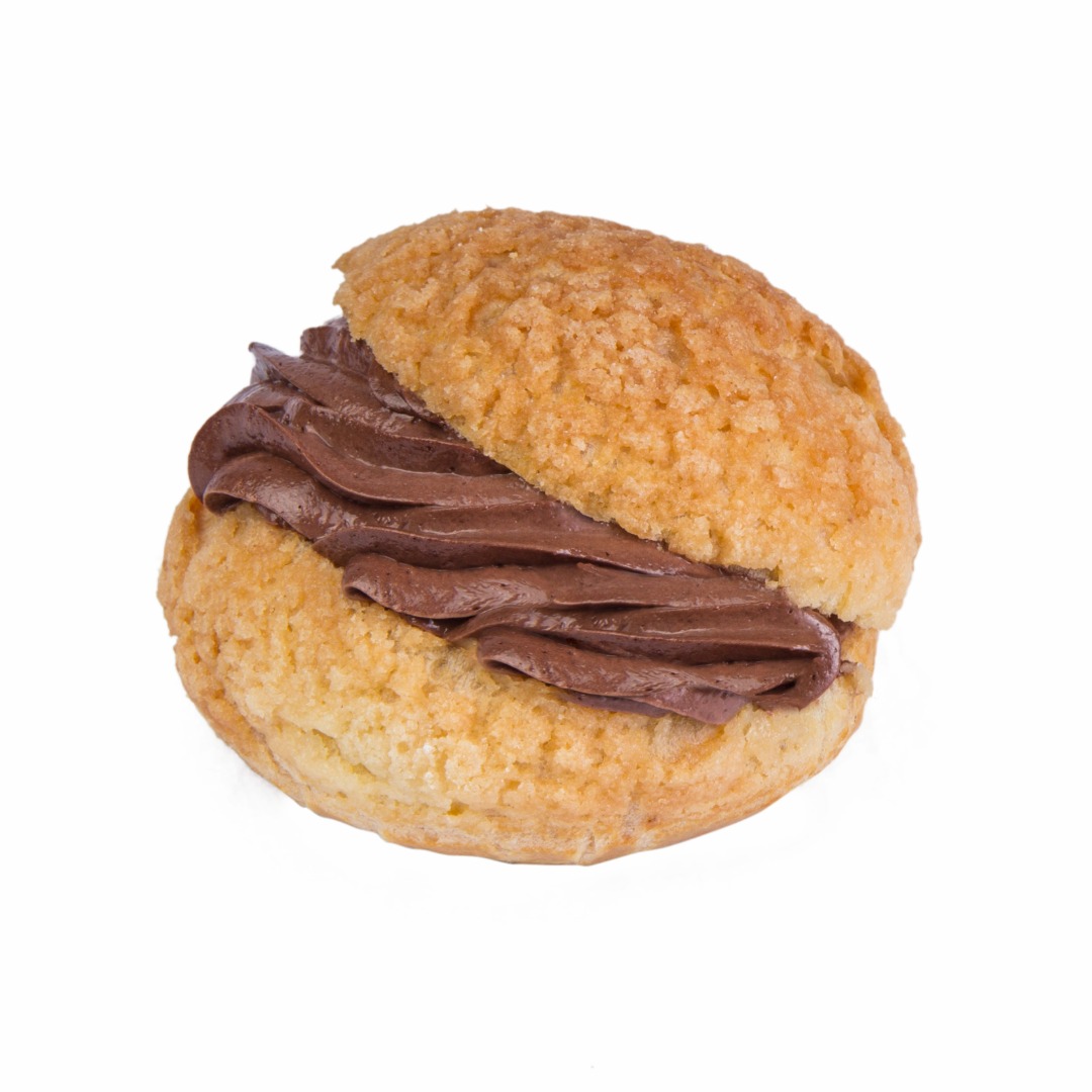 柔滑的巧克力鮮奶油內餡,搭配手工製作的日式泡芙派皮,一口咬下外酥內柔,其中 暗藏的輕乳酪蛋糕為整體口感增添層次變化,讓巧克力的濃郁風味多了一分清爽與耐吃感。